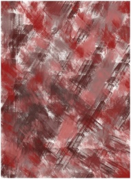 Dynamic abstract painting with red and white brushstrokes creating a textured visual effect.