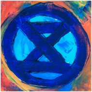 Colorful abstract expression of a symbol in bold hues, perfect for modern art lovers.