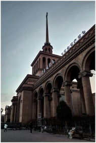 Unique architectural design of Sasuntsi David station in Yerevan, Armenia captured during the day.