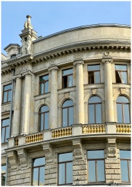 Elegant classic architecture with columns and arched windows in St. Petersburg, Russia.
