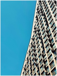 An impressive skyscraper in Kyiv with glass windows and a clear blue sky, capturing modern architecture.