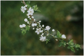Close-up of delicate white flowers blooming on a tree branch, symbolizing spring's arrival.