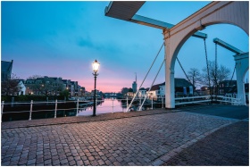 Captivating twilight capture of a historic bridge in Zierikzee, showcasing the tranquil river and iconic architecture.
