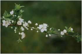 A beautiful cherry blossom branch with vibrant whi