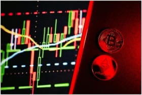 A vibrant image showcasing Bitcoin and Ethereum coins alongside a digital trading graph.