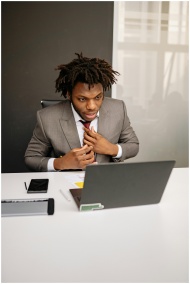 A young businessman with dreadlocks works intently