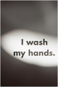 Minimalistic poster with a bold statement promoting hand hygiene.