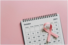 Pink ribbon on October calendar symbolizes breast cancer awareness.