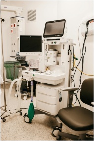High-tech monitoring equipment in a hospital room,