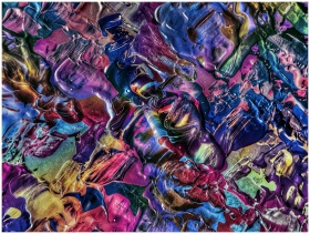 Colorful and textured abstract acrylic painting with vivid tones and dynamic forms.