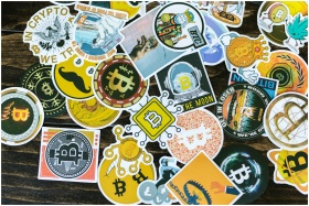 Colorful collection of Bitcoin-themed stickers on