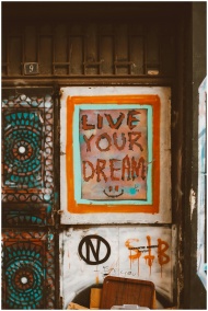 A colorful graffiti art with the message 'Live Your Dream' painted on an urban wall.
