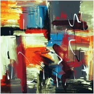 Colorful abstract expressionist painting with bold brushstrokes and dynamic composition.