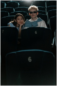 Young couple relaxing at a cinema, seated together