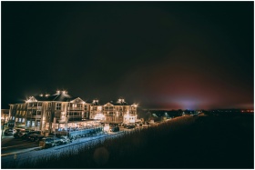 A beautifully illuminated hotel building at night