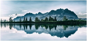 Stunning mountain landscape reflected in a serene