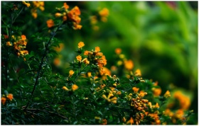 Close-up of vivid orange flowers with lush green l