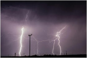 Intense lightning strikes during a storm over rura