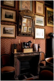 Sophisticated Parisian room with a fireplace, art, and elegant furniture.