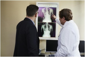 A doctor explains X-ray results to a patient in a