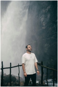 A man standing by the majestic Kapuzbaşı Waterfall in Kayseri, Türkiye, embracing nature's power.