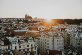 Stunning view of Prague at sunset, highlighting the historic skyline and architectural beauty.
