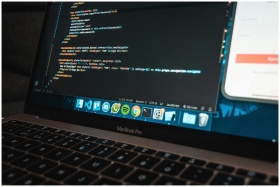 Close-up of a laptop with code on the screen, perfect for illustrating programming concepts.