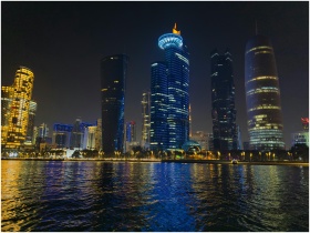 Captivating night scene of Doha's illuminated skyl