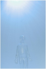 Transparent mannequin illuminated by a cool blue l