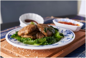 Delicious vegetarian meal featuring sautéed mushrooms and greens, perfect for healthy dining.