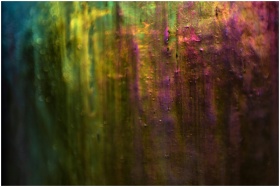 A hand pressing against a glass surface with vivid