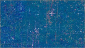 Richly textured abstract painting in blue with vibrant accents, perfect for backgrounds.