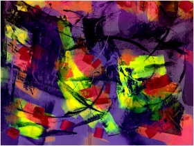 Colorful abstract expressionist artwork using bold neon tones.