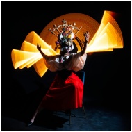 A vibrant Catrina performance with dramatic light painting in Ciudad de México.