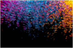 A dynamic and colorful abstract artwork featuring