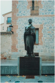 Stone statue in Ávila, Spain against historic bric