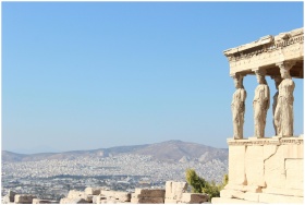 View of the Caryatids of Erechtheion with Athens s