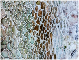 A detailed abstract aerial view of the Egerszalók Salt Hill with vibrant mineral patterns.