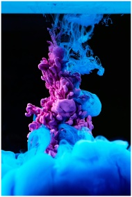 Vibrant blue and purple ink swirling in water creates a colorful abstract pattern.