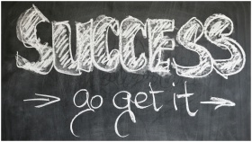 Motivational chalkboard with 'Success - go get it' written in chalk.