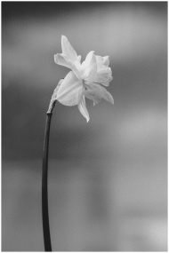A monochrome close-up of a blooming flower with an elegant, minimalist composition.