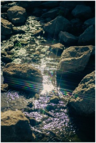 Capture of sunlit stream flowing over rocks in Укр