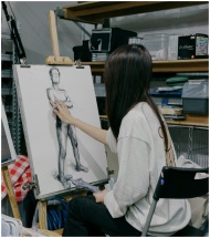 Artist sketching a figure in a Tokyo studio, showc