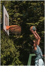 Athlete performs an impressive slam dunk on an out
