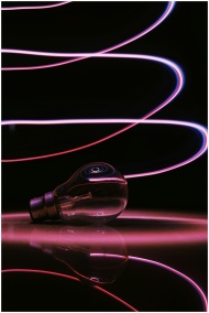 Creative long exposure shot of a light bulb with colorful light streaks.