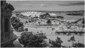 Scenic black and white photo of Plaza Maua in Rio