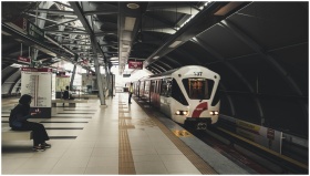 Passenger waiting for a train at a modern railway station in Kuala Lumpur, Malaysia.