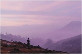 Silhouette of a person at dusk overlooking beautif