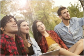 Four young friends relaxing and enjoying the outdo