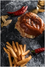 Mouthwatering spicy burger with crispy fries and a